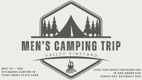 Register today for our men's camping trip. Click on the graphic to register!